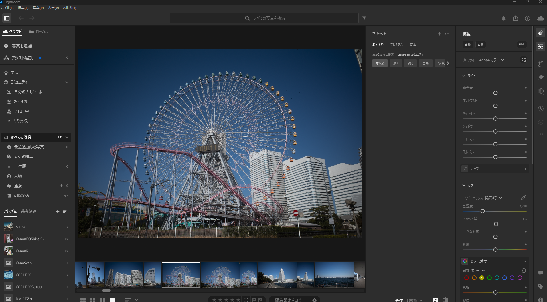 Lightroomには編集対象の画像をAIが解析して、それにおすすめのプリセットの候補を出してくれます.